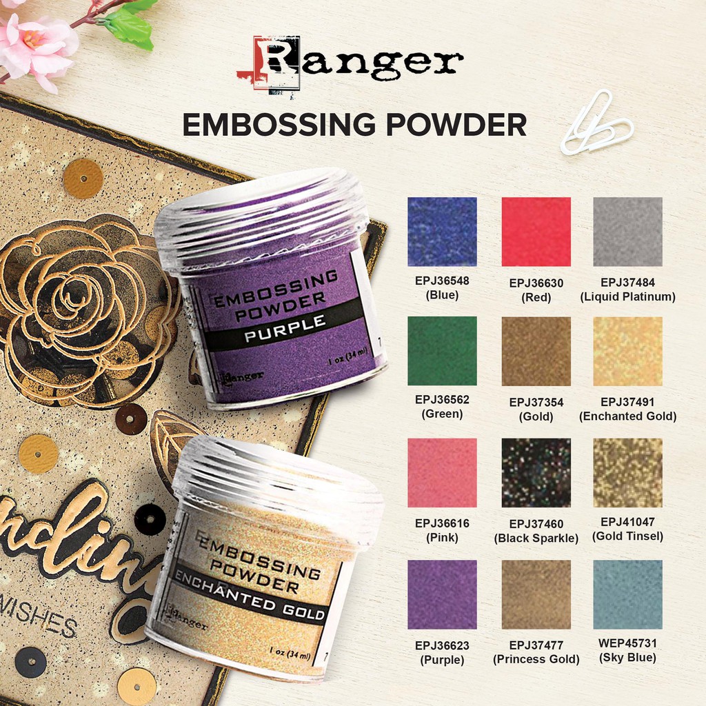 Embossing powders are available in a rainbow of colors and a variety of finishes from matte to glossy to metallics to glittery. Step 9 Add color with distress ink or another medium and a paint brush. You then stamp the image on to your paper and cover it with clear embossing powder.